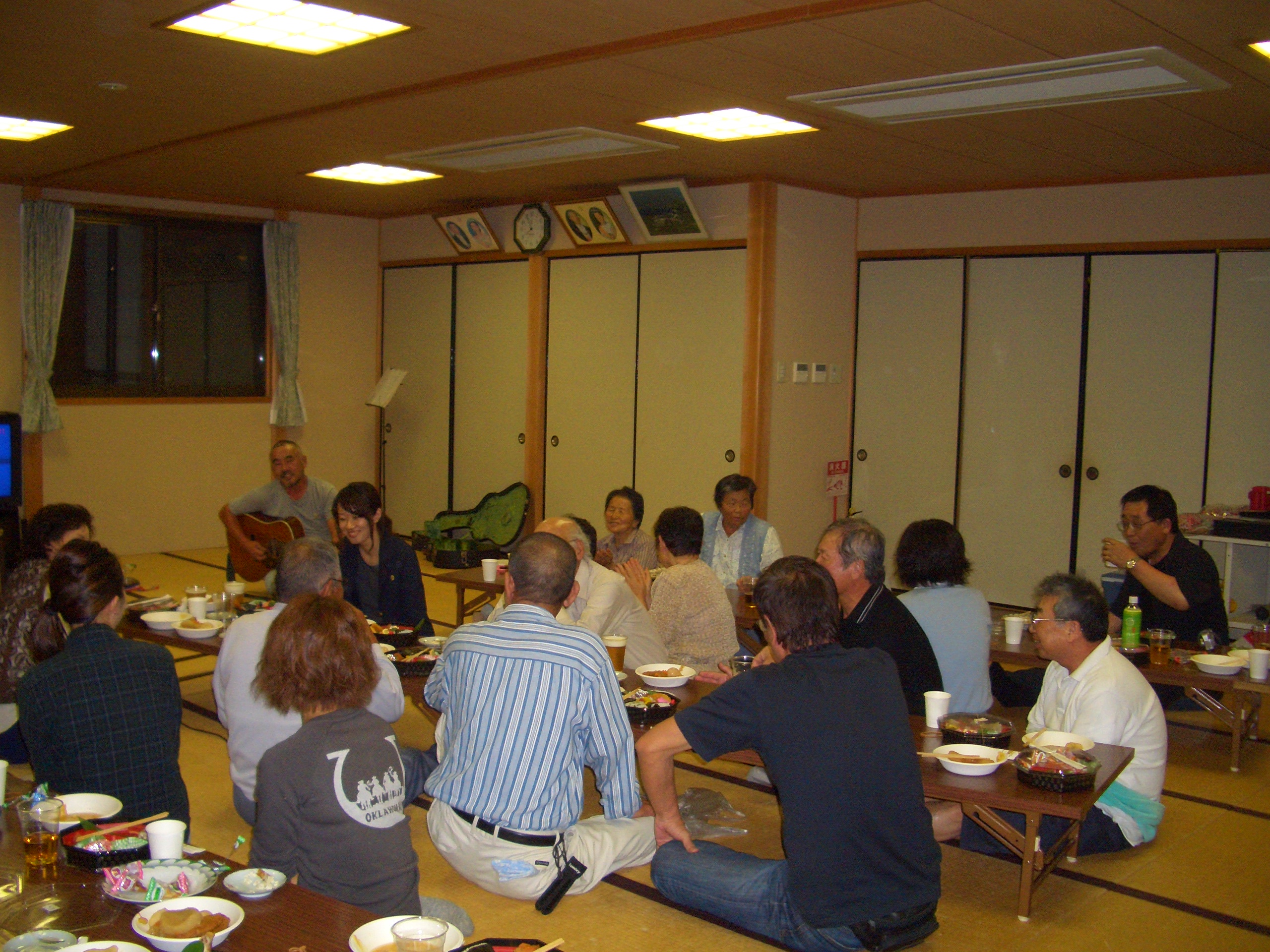 2008年9月、瀬戸内の穏やかな海と自然に囲まれた中、今年も島民の方々との交流会を行いました。島の皆様に、島での暮らしについて、又今が旬の“いかの一夜干し"の方法など